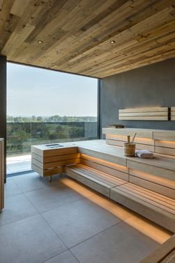 Discover pure relaxation in the expansive Thermal Spa, spanning approximately 5,000 sqm with various comfort zones and a total of 6 thermal pools. The new LandTherme features, among others, a 30 m infinity thermal lake pool (about 86°F), a thermal hot pool (about 100°F), a natural bathing lake with sun decks, and a pine relaxation room. In the Adults Only Sky Spa on the 4th floor of the Dorfchalets, unwind with a splendid view over the Bavarian countryside. The highlights of the Sky Spa include the rooftop thermal water pool and the panoramic saunas. Additionally, enjoy sauna delights in the LandSauna area (10:30 a.m.-7 p.m.) with amenities such as a pine infrared sauna, herbal steam bath, as well as a salt grotto and graduation tower. In the Spa Lounge, find a Grander water fountain, a tea station, and fresh apples.