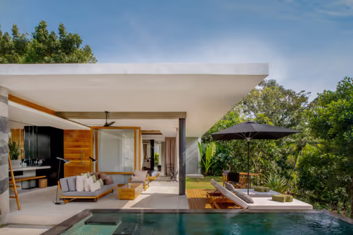 Elegant and authentically Sinhalese in design, with a minimalist architectural style, the seven villas and two spacious mansions create a serene ensemble amidst lush tropical vegetation. Space, light, and clean lines dominate the overall appearance, creating an atmosphere that instantly slows down the pace of life. The Contemporary Villas feature large panoramic windows that open up to the green surroundings. Private terraces with freshwater pools and seating areas extend the living space outdoors. A personal butler (Villa Master) ensures a discreet and attentive stay. The one-bedroom Colonial Mansion, perched on a hill, offers separate living, sleeping, and dining areas. A daybed and a generous outdoor area with a garden, wooden deck, and lounge provide additional retreats. The two-bedroom Colonial Mansion additionally offers another bedroom and both an indoor and outdoor bathroom.