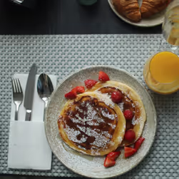 Indulge in a diverse selection of healthy dishes at "Opus farmers market", blending local and French cuisine. Breakfast entices with fresh fruits and vegetables, excellent local products such as Kisasszondi cheese, Mangalica products, and homemade specialties like marinated fish and jams. Enjoy creamy yoghurts, a muesli bar, freshly ground coffee, spiced teas, and freshly squeezed juices. The breakfast highlights include Beluga caviar and French champagne.