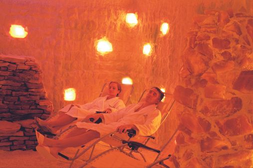 A serene spa resort with its own therapy department, beauty and aqua centres featuring a pool, whirlpool, salt grotto, steam bath, tepidarium, and sauna. All treatments under one roof.