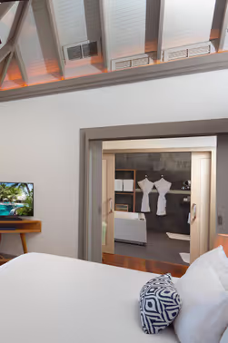 The resort offers various types of villas and suites, either built on the beach or on stilts over the water. Each villa is luxuriously equipped, with a private pool, direct access to the sea or beach, and state-of-the-art technology. Particularly popular are the Overwater Villas, which offer an undisturbed view of the ocean and are ideal for honeymooning couples.