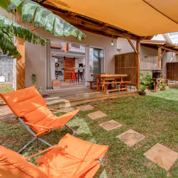 The 3 Eco-Lodges are designed in traditional Mauritian architecture, using natural materials and elements of Mauritian heritage to create a warm and welcoming atmosphere. Inside, guests will find comfortable furniture, cosy bedding, and thoughtful decor. The Garden Lodges feature a bedroom on the mezzanine, a living room, an equipped kitchenette, a washing machine, and a private terrace.