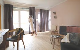 The 67 rooms spread across 4 floors dazzle with simple elegance, abundant daylight, and natural materials. The minimalist design encourages relaxation, while larch wood floors and warm textiles create an atmosphere that allows you to distance yourself from daily life. Selected rooms are available for guests with dogs or cats (on request).