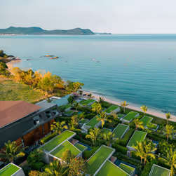 The MASON Pattaya is an exclusive design resort located on the coast of Na Jomtien, south of Pattaya, designed as a sanctuary for couples and those seeking tranquility. The modern, clean architecture by renowned architect Vasu Virajsilp is inspired by the unique location between the sea, rocky hills, and a fishing village. With a strong focus on sustainability, privacy, and aesthetics, the stylish pool villas combine luxurious comfort with natural materials and regional craftsmanship. Particularly impressive is the elevated position of the villas, offering panoramic views of the sea and romantic sunsets. Deeply rooted in the region, the resort collaborates closely with local artists, fishermen, and craftsmen, a concept that blends authentic luxury with cultural connection.