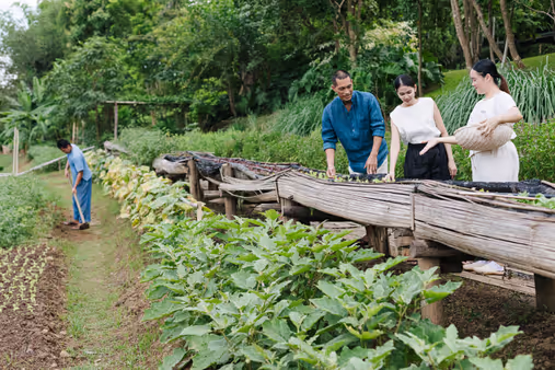 The Raya Heritage features 38 spacious suites across three floors, surrounded by lush gardens and just steps away from the tranquil Ping River. The suites blend traditional North Thai Lanna elements with modern comforts. Each suite boasts an outdoor terrace, while the Kraam Pool Suites also feature a private pool. Handcrafted artworks such as woven textiles, baskets, porcelain, and wood carvings give the suites a luxurious yet natural charm that reflects local craftsmanship.