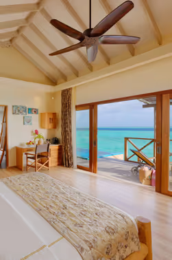 The 109 villas and suites of the resort - 99 of which are built over water - blend exclusive comfort with tropical design. All accommodations are stylishly furnished and equipped with natural, handcrafted furniture. They offer spacious living areas, a modern bathroom, and a furnished terrace.