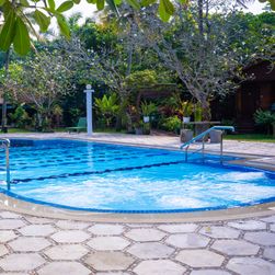 Spread across tropical gardens, 40 spacious double rooms (approx. 25-38 sqm), also available for single use, are distributed among several charming two-storey hotels. Choose between lovingly designed Eco-wood cottages - built specifically for Ayurveda guests, surrounding the pool and in close proximity to the Ayurveda Center - or stylish comfort rooms with views of the greenery, side or direct sea view. Both categories are simply and clearly furnished, with tiled floors, shower/WC/bidet, mosquito net, ceiling fan, individually adjustable air conditioning, safe, and a balcony or terrace - a place to arrive and breathe. The comfort rooms additionally offer either a colonial-style four-poster bed or two single beds. Wi-Fi is available in all areas.